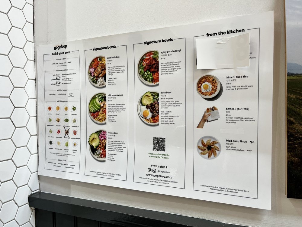 Introducing Gogobop - Korean Rice Bar, a culinary gem located on Broxton Avenue in Los Angeles. This vibrant eatery specializes in Korean rice bowls that showcase authentic flavors and quality ingredients. Whether you're looking for a hearty Beef Bulgogi Bowl, featuring tender ribeye in a savory soy marinade, or the ever-popular Pork Belly Bowl with its delectable crispy texture, there's something for everyone.